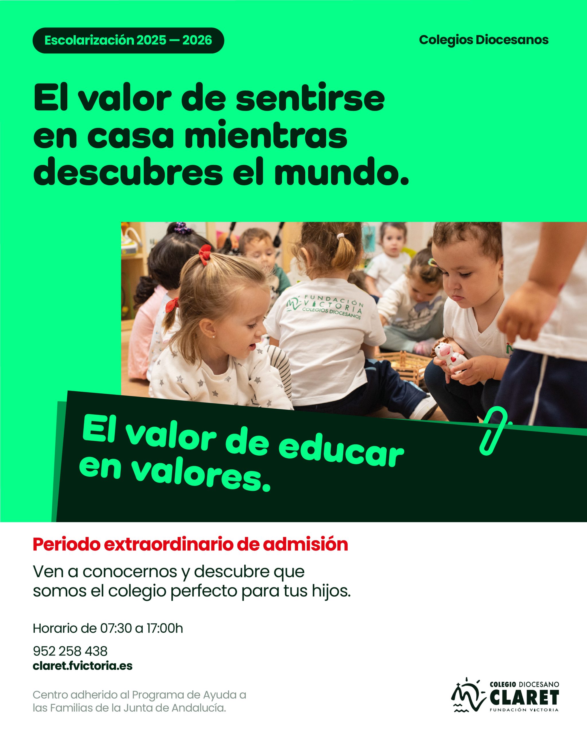 Fundación Victoria, obra educativa de la Diócesis de Málaga, cuenta con una amplia oferta en el 1º Ciclo de Educación Infantil: